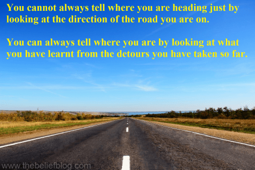 You cannot always tell where you are heading just by looking at the direction of the road you are on. You can always tell where you are by looking at what you have learnt from the detours you have taken so far.